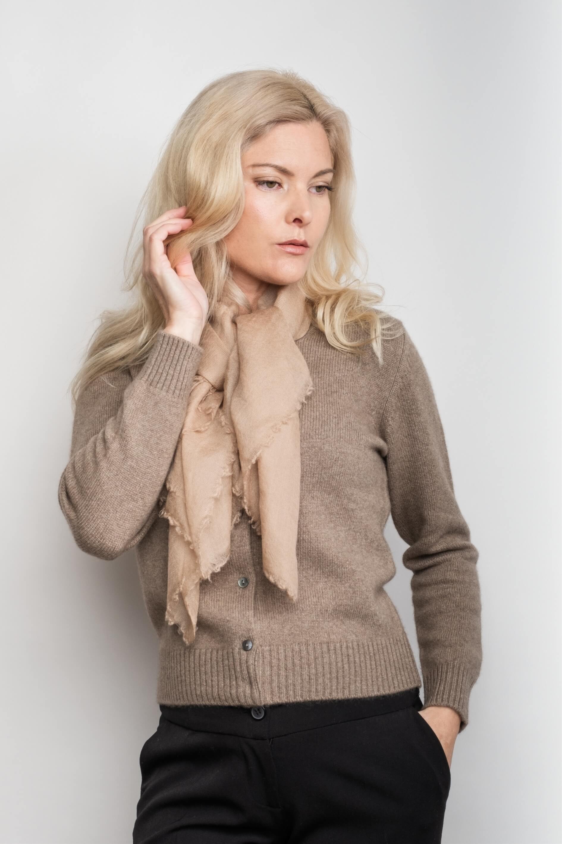 Care guide: Hand wash your cashmere using a gentle cashmere shampoo. Avoid wringing the fabric; instead, gently squeeze out excess water. Lay flat to dry in the shade, ensuring it's reshaped to its original form.